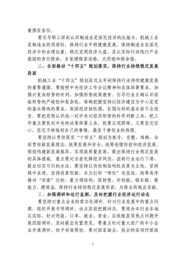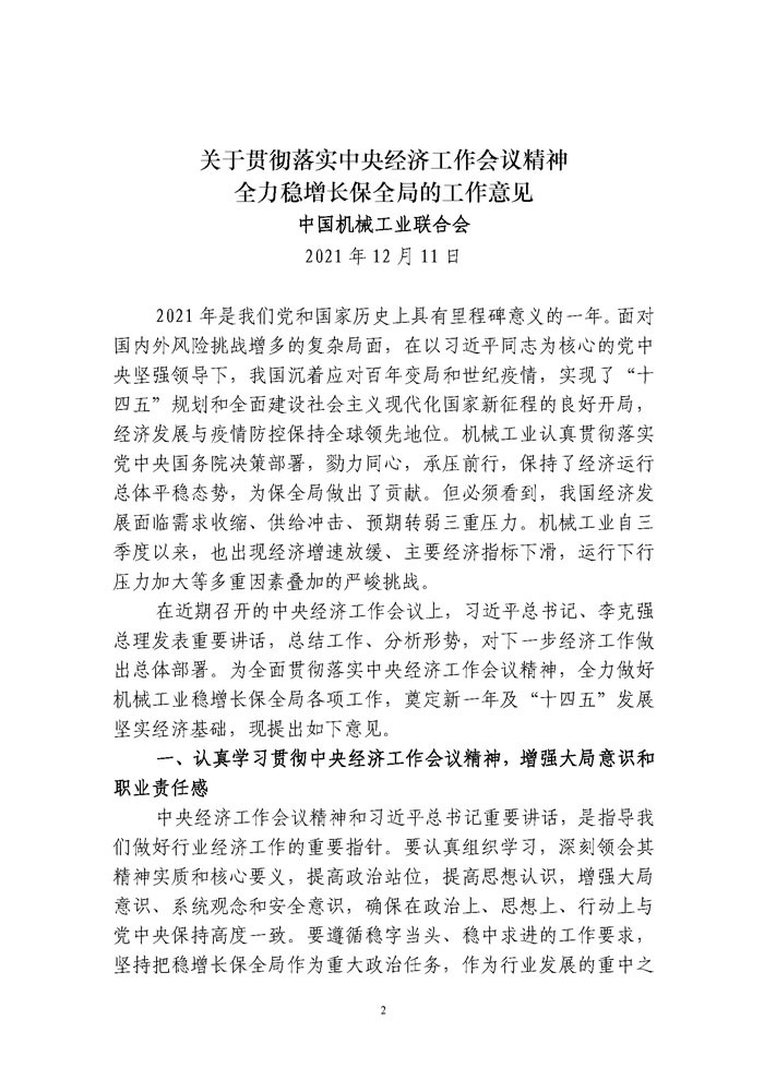 【编者按】为全面贯彻落实中央经济工作会议精神,全力做好机械工业稳增长保全局各项工作,奠定新一年及“十四五”发展坚实经济基础,中国机械工业联合会近期印发了《关于贯彻落实中央经济工作会议精神全力稳增长保全局的工作意见》 。