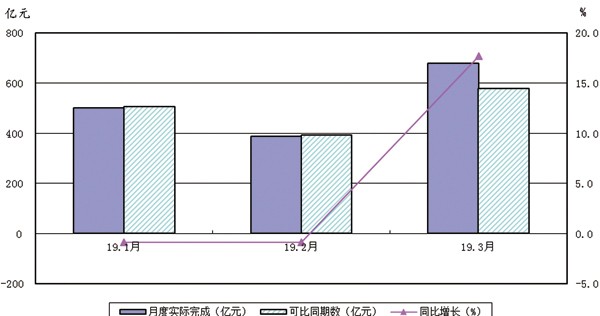 2019年1-3月规上企业营业收入月度完成及同比变动情况见图1。