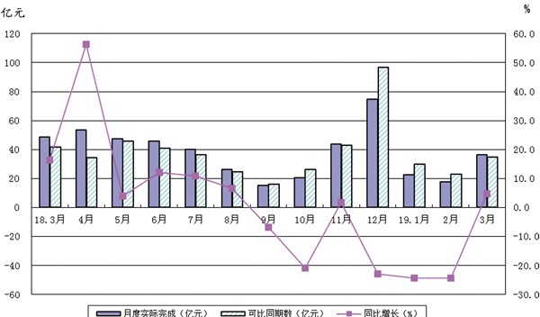 受2018年行业运行前高后低趋势影响,2019年前3个月行业主要经济指标总体处于低位,但3月份表现出弱势好转迹象。