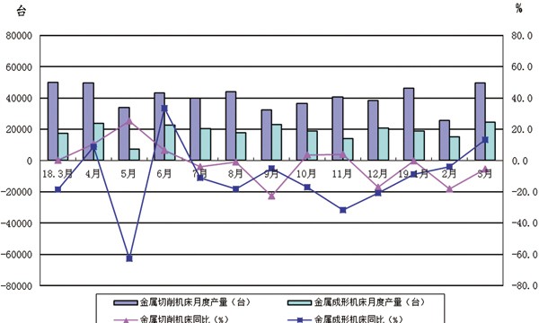 协会重点联系企业2019年1~3月金属加工机床产量同比下降17.2%。其中,金属切削机床产量同比下降20.3%;金属成形机床产量同比下降4.5%。
