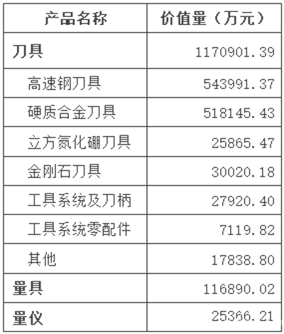 随着3C行业原有市场需求趋缓和汽车行业的逐步下行,从2018年下半年开始,工具行业(主要是刀具产品)增速放缓,下行压力越来越大。目前来看,量具产品产销继续增长,刀具产品销售出现负增长,其中硬质合金刀具比高速钢刀具下降多。