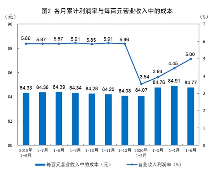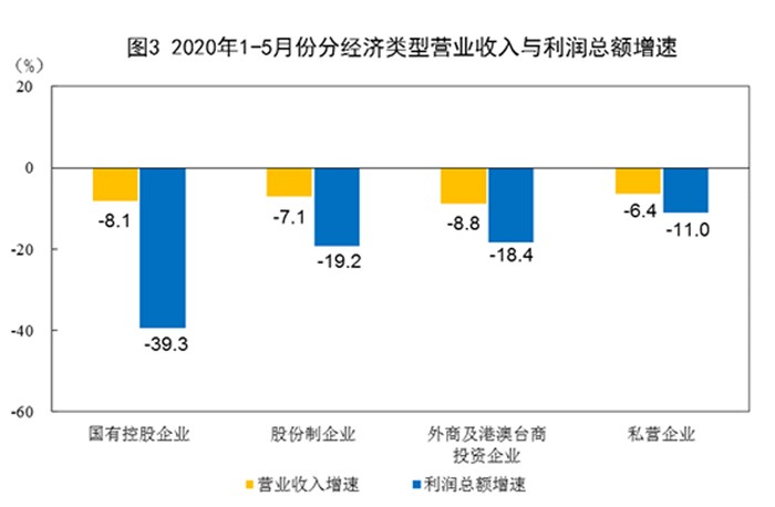 2020年1-5月份全国规模以上工业企业利润下降19.3%