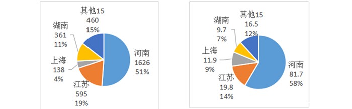 a. 数量分布(单位:吨) b. 金额分布(单位:万美元)