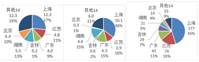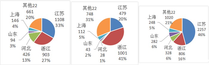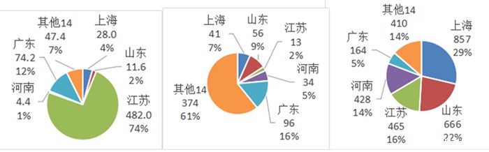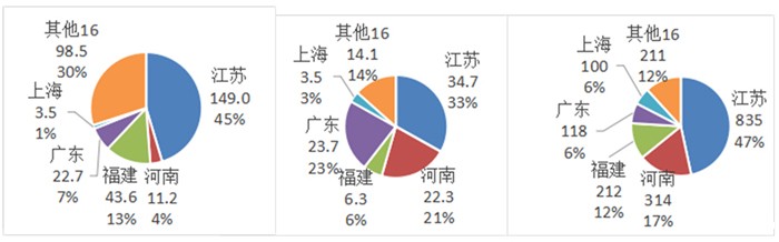 a.数量分布(单位:吨) b.数量分布(单位:万套) c.金额分布(单位:万美元)