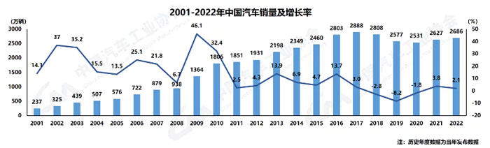 中国汽车工业协会最新数据显示,2022年12月汽车产量环比微降,销量小幅增长,同比均呈现下降。2022年全年,汽车产销分别完成2702.1万辆和2686.4万辆,同比增长3.4%和2.1%,实现小幅增长。