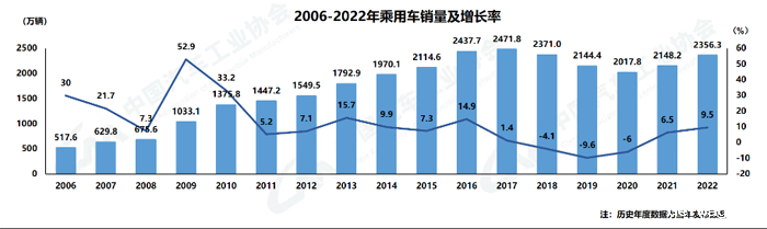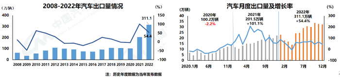由于海外供给不足和中国车企出口竞争力大幅增强,2022年汽车出口突破300万辆,同比增长54.4%,有效拉动行业整体增长。