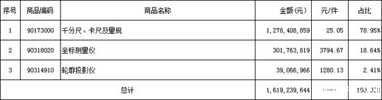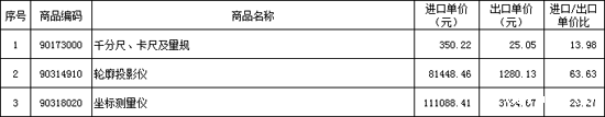 比较相同商品编码产品,进口量具和量仪价格远高于出口价格(见表5)。