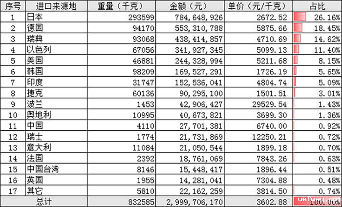 表1到表6,根据海关数据,分别从刀片进出口总额、涂层刀片进出口、非涂层刀片进出口、刀片进出口单价、涂层刀片进出口来源地、非涂层刀片进出口来源地等几个方面进行了计算分析。