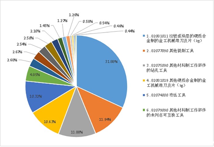 出口增长幅度较大的刀具品种有:涂层刀片同比增长39.87%,双金属带锯条同比增长19.49%,攻丝工具同比增长12.70%。