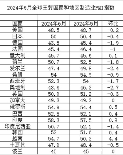 6月份全球制造业PMI为49.5%