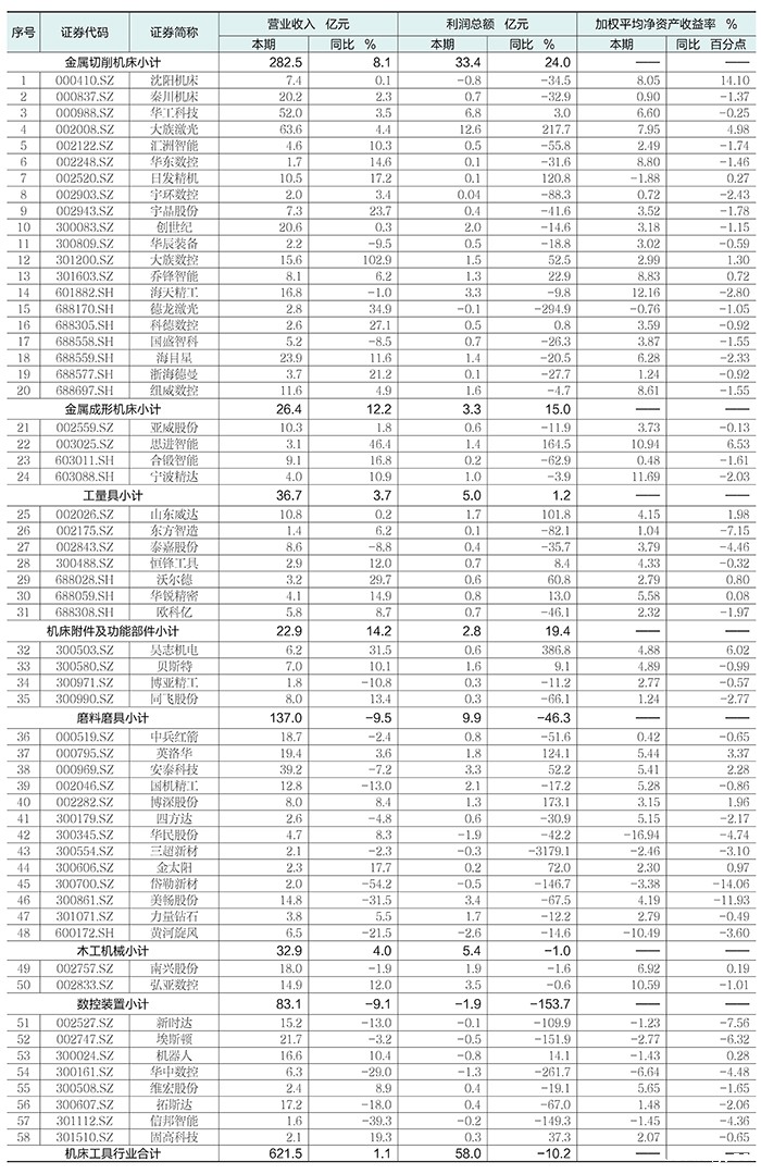 行业上市公司是行业重要企业群体,我们选取中国机床工具行业特征突出的上市公司作为重点关注对象,本文根据这些上市公司2024半年度报告,汇总分析行业上市公司的运行情况。