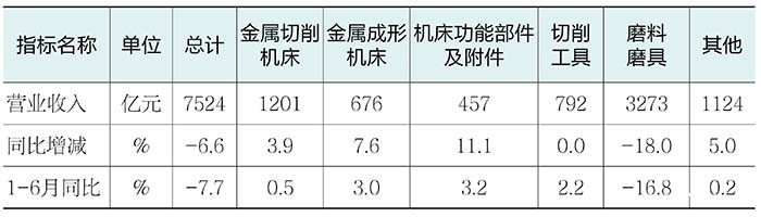 机床工具全行业及主要分行业的营业收入情况,详见表1。