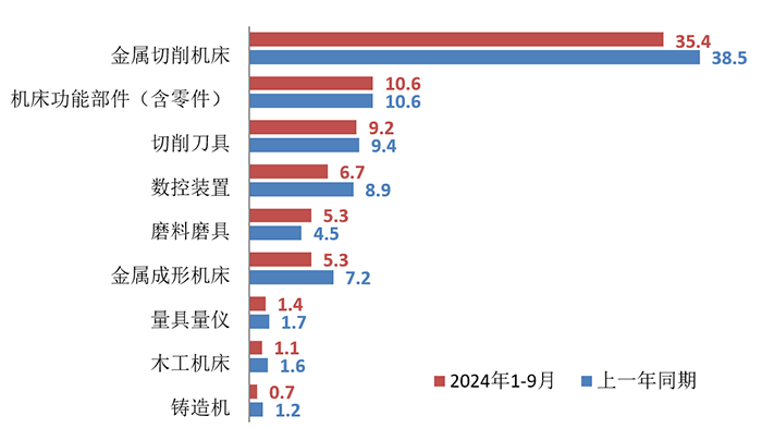 表1 2024年1-9月机床工具全行业及主要分行业的营业收入情况