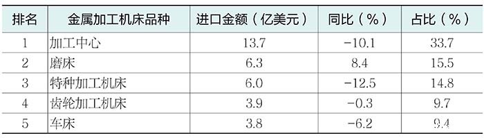 (1)进口金额排前五位的金属加工机床品种
