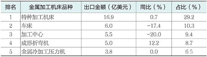 (2)出口金额排前五位的金属加工机床品种