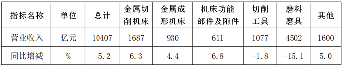 表1 2024年机床工具行业及主要分行业的营业收入情况