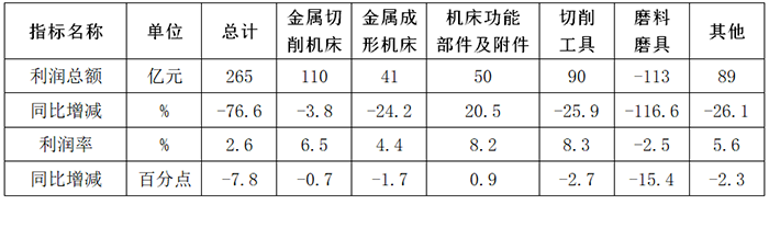 机床工具行业及主要分行业的利润总额、利润率情况,详见表2。