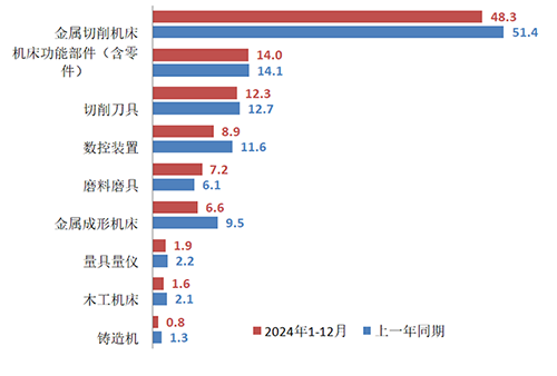 2024年,机床工具行业进口延续了上年下降趋势。主要原因有市场需求不足、技术进步带来的进口替代,以及西方国家对高端机床的限制等几个方面。