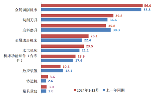 2024年,机床工具行业整体出口同比增幅较上年度扩大2.8个百分点。其中,金属切削机床、金属成形机床、木工机床、机床功能部件(含零件)、切削刀具、量具量仪等产品的出口都实现了增长,其中金属成形机床和木工机床的出口更是呈两位数增长,对行业的整体运行起到重要的支撑作用。