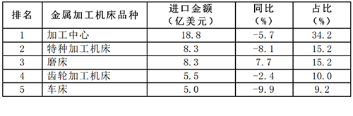 2024年进口前五位的金属加工机床品种及其进口金额,详见表5。