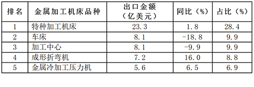 2024年出口前五位的金属加工机床品种及其出口金额,详见表6。