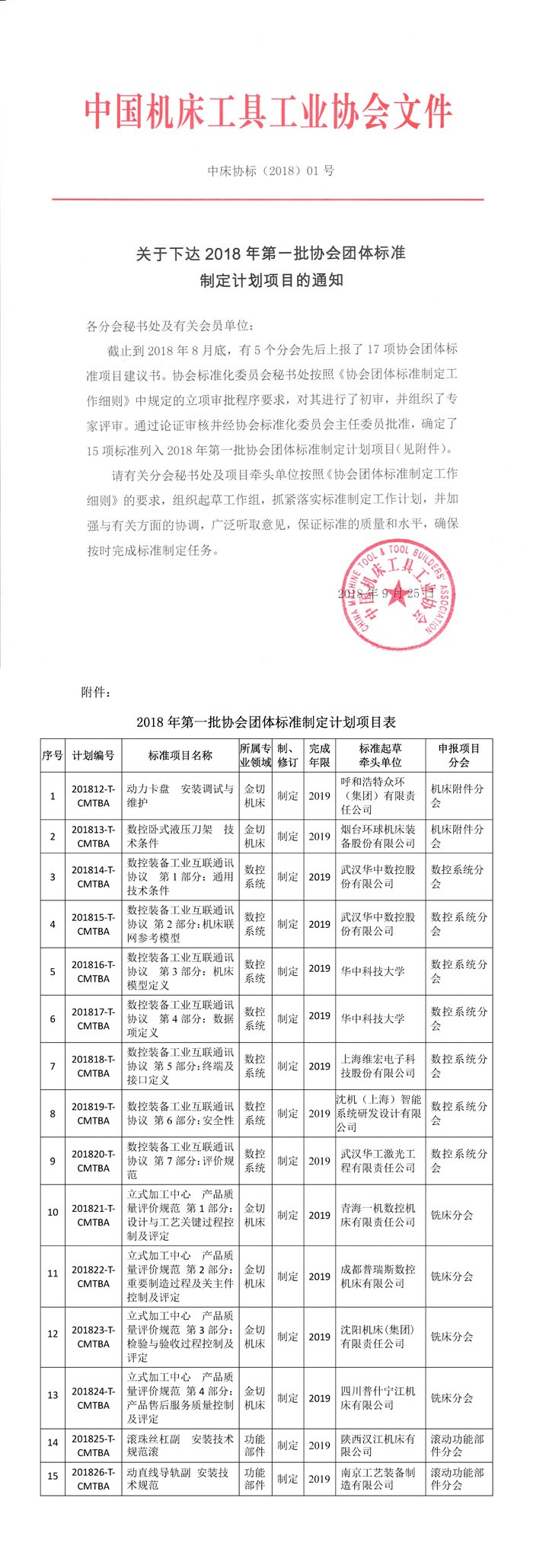 中床协标(2018)01 号 关于下达2018年第一批协会团体标准制定计划项目的通知.pdf
