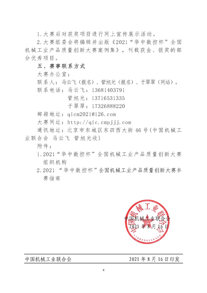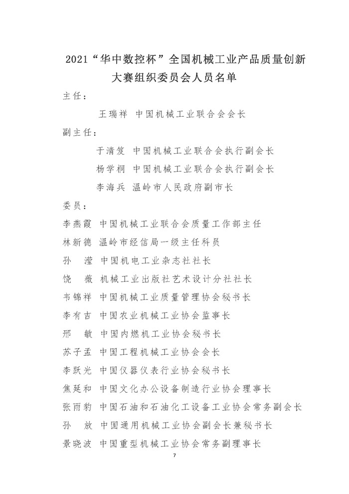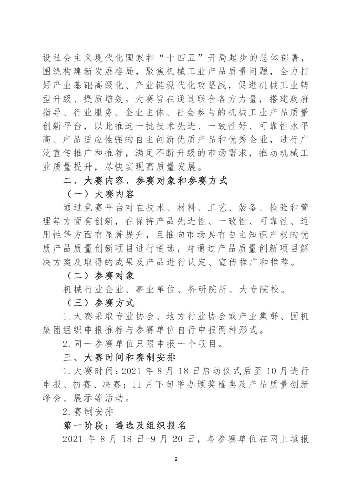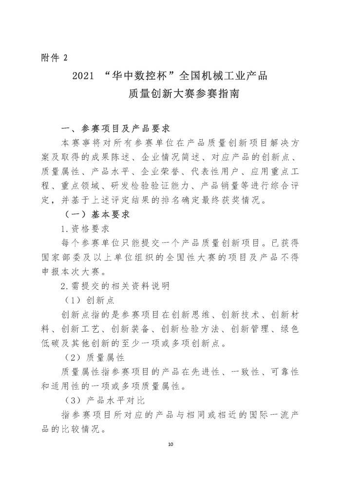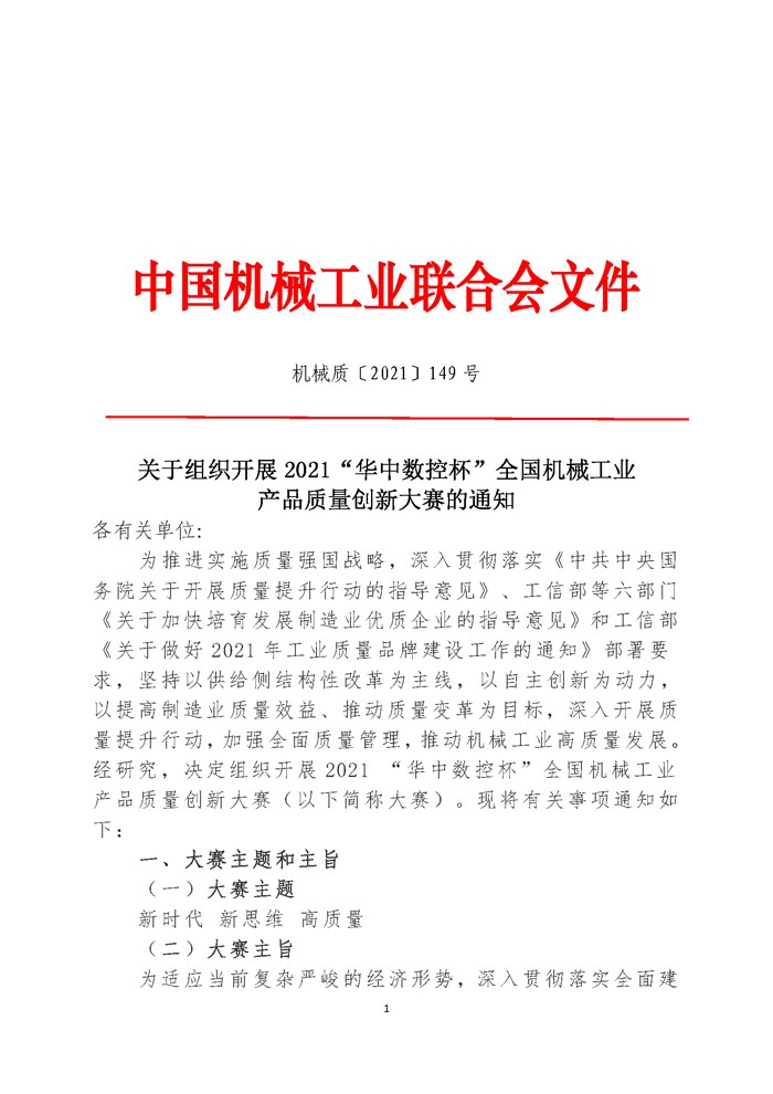 关于组织开展2021 “华中数控杯”首届全国机械工业产品质量创新大赛的通知
