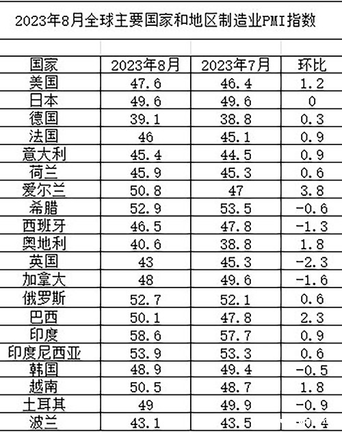 8月份全球制造业PMI出炉,连续两个月环比上升