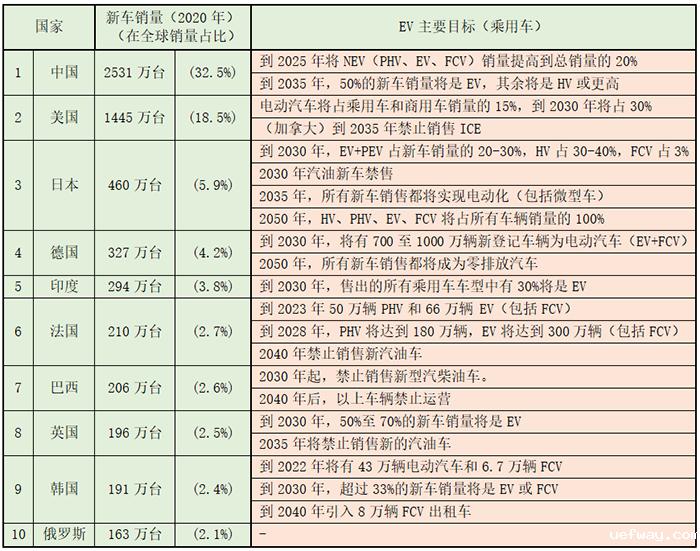 表1所示为2020年汽车销量排名前10的国家,他们的销量占全球销量的70%以上。鉴于这些国家正在推进电动化,可以预见2030年汽车行业的电动化率将大幅提升。