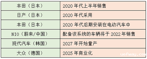 在这些相关零部件中,下一代电池将成为2030年的关注焦点。为了扩大EV的使用范围,共同课题是急需降低车辆成本和延长续航里程。截至2020年,新一代电池中备受关注的全固态电池研发才刚刚起步,不仅是电池厂商,汽车厂商也纷纷开始参与研发(表4)。