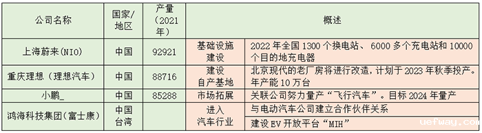 表5中所列的富士康等电子制造服务(EMS)公司也开始生产电动汽车。虽然该公司是全球最大的EMS,但它已经建立了自己的EV开发平台“MIH”,并开始发展一项业务,在该业务中,它为使用该平台的其他公司承担所有EV生产。