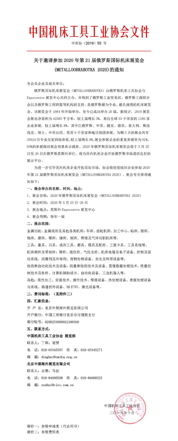 关于邀请参加2020年第21届俄罗斯国际机床展览会 (METALLOOBRABOTKA 2020)的通知