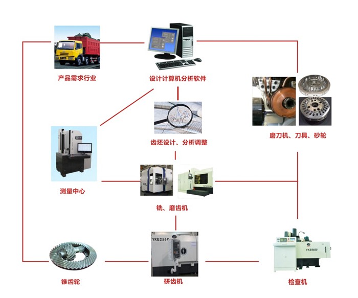 目前,在国内提到螺旋锥齿轮机床,人们必然会想到中大创远,它是继美国格里森和德国克林贝格之后,全球第三家掌握螺旋锥齿轮成套技术解决方案的企业。它拥有国内首套螺旋锥齿轮数字化闭环生产系统,可以实现从齿轮设计到加工全过程的自主化生产。中大创远技术负责人跟记者介绍:“国内某车桥厂家生产高档汽车驱动桥螺伞齿,完全可以采用我们的齿轮设计与计算分析软件进行齿轮设计,用干切机床进行齿轮的高效切削,用齿轮测量中心进行齿轮精度检测和齿形误差测量等,而我们的磨刀机和装刀机,可以保证刀具磨削精度及刀具组装精度。”
