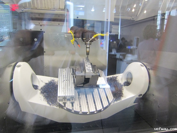 DMG MORI展出5台机床,包括一台CMX 600V立式加工中心,一台NHX 4000卧式加工中心,两台车削中心CLX 350与NLX 2500/700,和一台五轴联动立式加工中心。NLX2500车削中心配BMT(内置动力刀塔),高速的旋转刀具主轴转速可达10000r/min,拥有强劲车削及铣削性能,高刚性床身。DMU 75monoBLOCK五轴立式加工中心,主轴转速20000r/min,数控摆动回转工作台最大承重600kg,最大加工直径840mm,占地面积不足8m2。