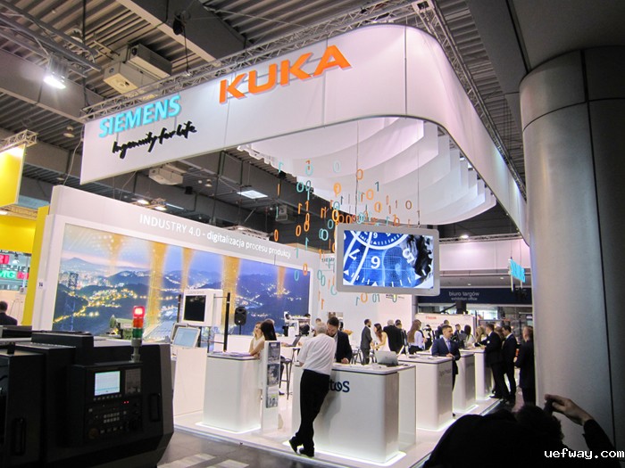 西门子公司联合KUKA展示了工业4.0探索,与MAZAK、ATOS、BLUMENBECKER、GMSystem等公司一起进行了集成应用,现场展示了云端集成应用效果,能够提供基于云计算的解决方案。数控系统、工业机器人和生产自动化解决方案供应商联合起来,通过物联网和智能机器使生产过程实现完全自动化,体现了工业发展的方向。
