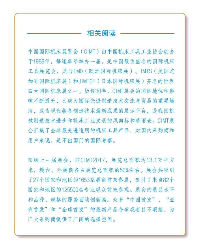 由luck18网址主办并与中国国际展览中心集团公司共同承办的“第十六届中国国际机床展览会(CIMT2019)”,将于2019年4月15-20日在北京中国国际展览中心(新馆)举办,预计展览总面积13.1万平方米。