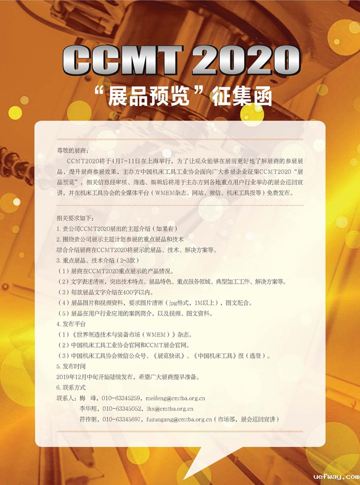 【CCMT2020“展品预览”征集函】
