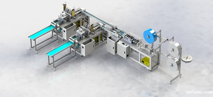 J1KZ-P全自动口罩生产线由上料系统、折叠成型系统、耳带熔焊机、下料系统组成;适用于多层PP无纺布、活性炭以及过滤材料,通过超声波熔接和自动封边,完成平面口罩多层材料复合成型。生产线采用PLC数控系统和伺服电动机、步进电动机驱动,生产线精度高、效率高、稳定性好;全自动送料系统方便调整及维护,多点光电检测上料系统能保障生产稳定运行并自动报警;折叠成型系统能有效减少产品变形。