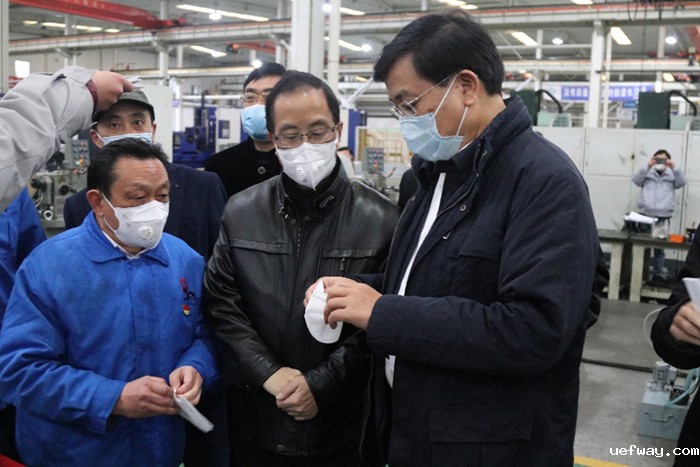 2月17日上午,四川省副省长王凤朝一行莅临公司视察指导,重点就疫情防控急需设备——口罩机生产线研制情况进行了调研。公司党委书记、总经理姜华,总工程师刘雁等陪同省市领导参观了生产现场并进行了专题汇报,王副省长对宁江机床勇于担当、努力作为的精神给予了充分肯定。