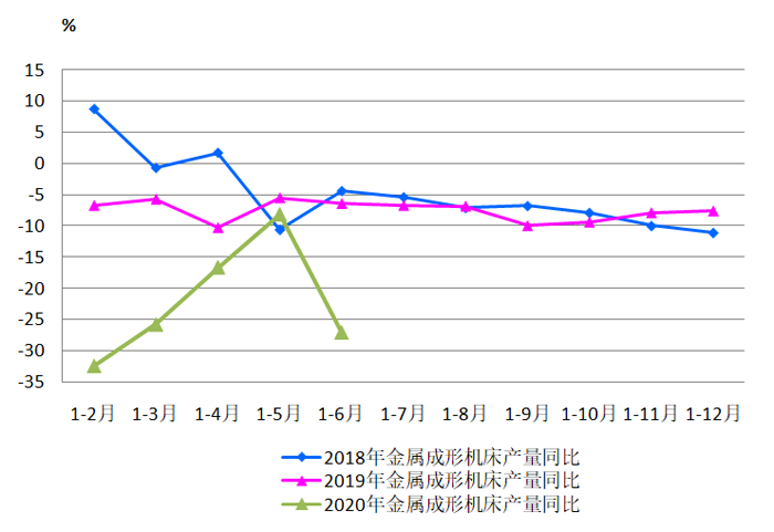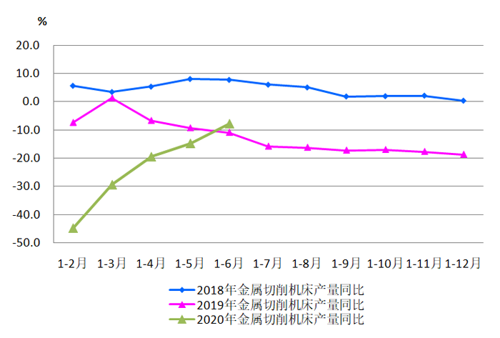协会重点联系企业2020年1-6月累计,金属切削机床产量同比下降2.5%,较今年1-3月同比降幅(-29.8%)收窄27.3个百分点;金属成形机床产量同比下降13.8%,较今年1-3月同比降幅(-37.4%)收窄23.6个百分点。大体上与国统局数据变化趋势一致。
