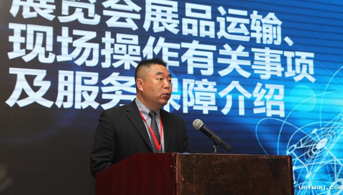 CIMT2021展会运输总代理代表——中国外运北京有限公司陈强总经理,向展商代表们介绍了展览会展品运输、现场操作有关事项及服务保障工作。北京外运会展服务有限公司史志刚总经理,从服务承诺、服务计划、服务创新和服务保障等四个方面,介绍了具体服务工作和相关业务组织情况。展会主场服务商代表——北京笔克展览展示有限公司钮鹤鸣副总经理,就展览会特装搭建、水电气供应、展具租赁等注意事项及服务保障工作向代表们做了介绍。