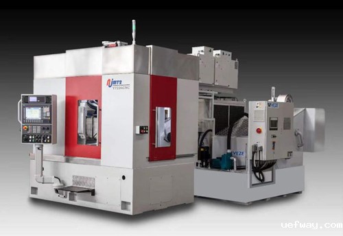 南京二机的数控双工作台蜗杆砂轮磨齿机Y7226CNC,采用双工件主轴设计,一个工件主轴在磨削加工的同时,另一个工件主轴可进行工件装卸以及对齿,减少辅助工作时间,提高机床加工效率。可配备机器人(桁架式或关节式)及料仓,实现自动化生产。