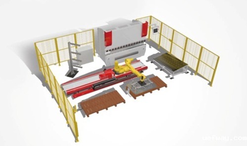 南通麦斯铁的自动折弯机器人工作站,由折弯机与六关节工业机器人组成,结合机器人折弯软件包MR-Bend以及折弯机器人离线编程软件包MR-ROBERT的功能,将折弯机和机器人合二为一,实现拆垛、上料、折弯跟随、码垛全自动加工,提高生产效率。