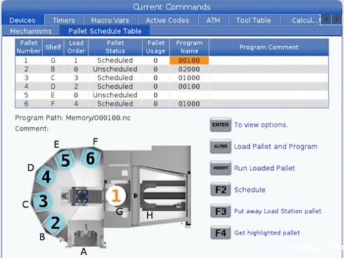 六工位托盘库(Pallet Pool)用于Haas卧式加工中心EC-400,满足大批量生产或高混小批量无人值守加工的解决方案。用户可为每个托盘分配指定零件加工程序,当托盘移至加工区域时,控制系统将自动调用指定的零件加工程序。