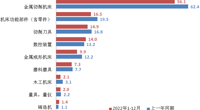 2022年1-12月金属加工机床进口额66.0亿美元,同比下降11.5%。其中,金属切削机床进口额56.1亿美元,同比下降10.1%;金属成形机床进口额9.9亿美元,同比下降19.0%。