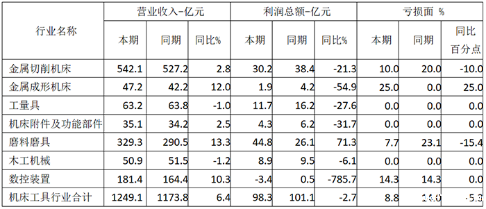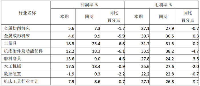 从各分行业营业收入和利润总额的同比变动情况看,仅磨料磨具分行业的营业收入和利润总额均保持增长;工量具和木工机械的营业收入和利润总额均呈现下降;其他分行业均为营业收入增长,而利润总额下降。