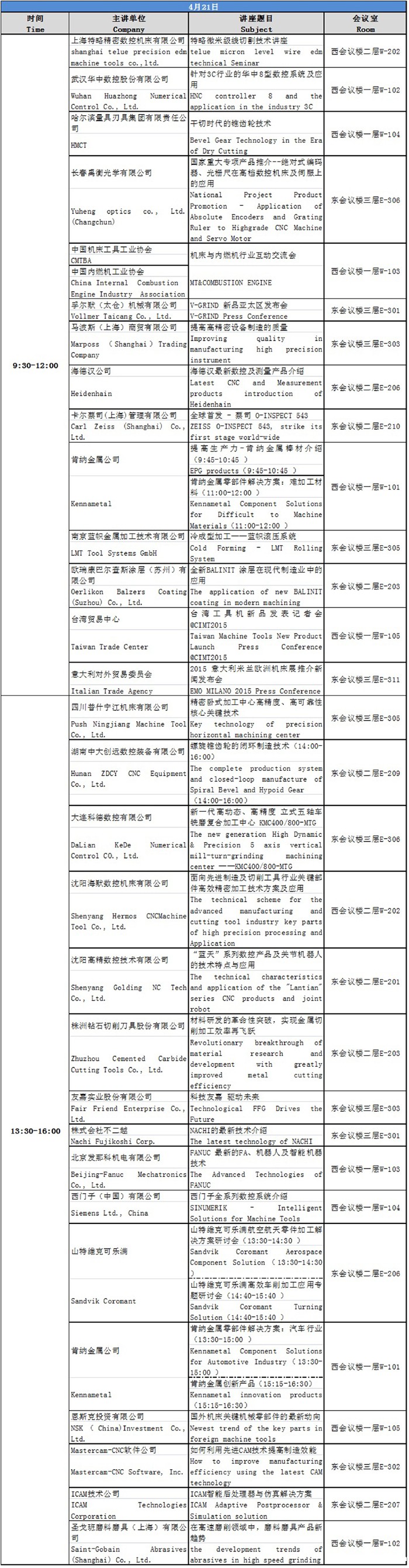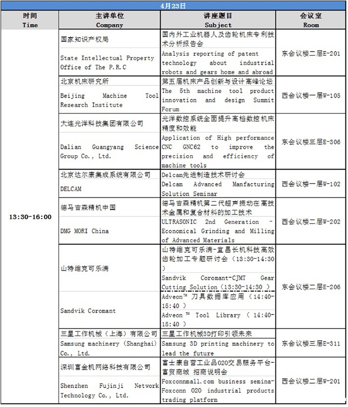 The 14th China International Machine Tool Show Technical Seminar Schedule