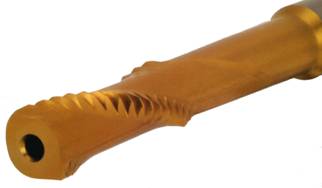 本届展会中一个令人瞩目的丝锥产品是埃莫克法兰肯公司的PunchTap丝锥(图14),可以说这是一种极具创新性甚至革命性的丝锥产品,我们或许可以称其为“插挤丝锥”。PunchTap颠覆了传统螺纹加工过程,与过去所有的丝锥最大的不同在于其加工螺纹时丝锥只旋转半圈,其加工过程分三个步骤:冲(插)→挤压→退出。