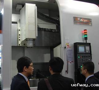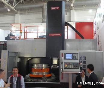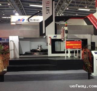 台湾崴立(WELE)展出了VTM16铣车复合立车,该产品获得2011年台湾研发竞赛特优奖。工作台直径Φ1600mm,最大加工直径Φ2000mm,滑枕截面226×226mm,铣主轴转速1600r/min,铣主轴扭矩304N•m,X轴快移12m/min,Z轴快移8m/min,定位精度±0.007/500mm,重复定位精度0.003mm,整机重量20t。