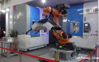 2、 机器人在数控立车上的应用越来越多,如:沈阳机床VertiTurn 250200DWMY立式车铣加工中心用机器人来按指令自动换刀,齐重数控利用工业机器人将SVT70和SVT100两台高精度数控立车组成轮毂加工自动线,可根据用户要求配备专业轮毂卡具及检测设备,在保证产品加工高效的同时保障产品质量。